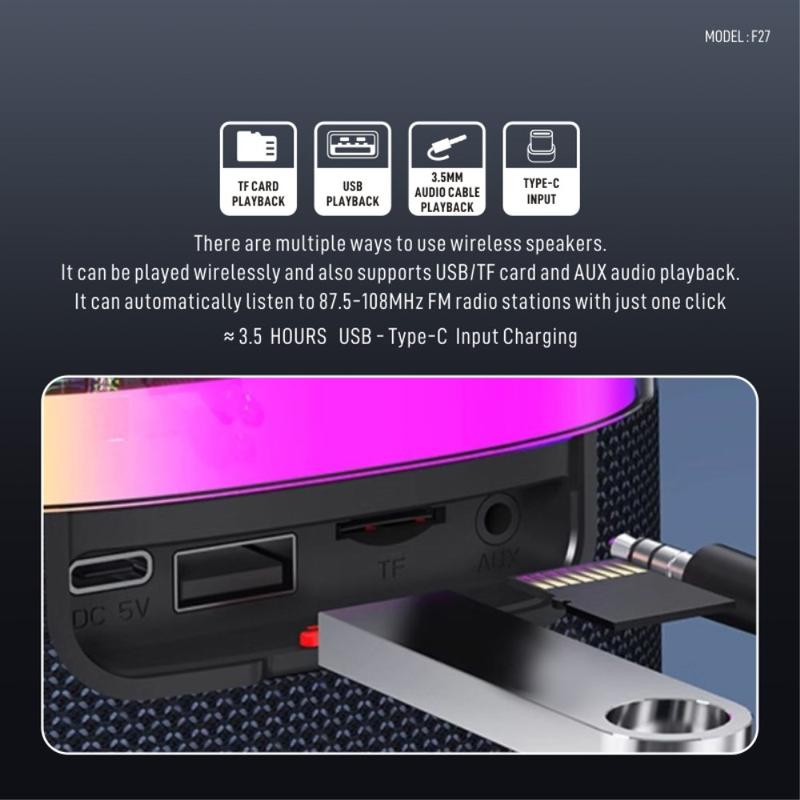 Der KONFULON F27 kombiniert starken Stereoklang mit kabelloser Freiheit und einem eingebauten Mikrofon, so dass Sie überall Musik genießen, singen oder sprechen können. Er ist ein kompaktes Kraftpaket, das jeden Moment musikalischer macht.