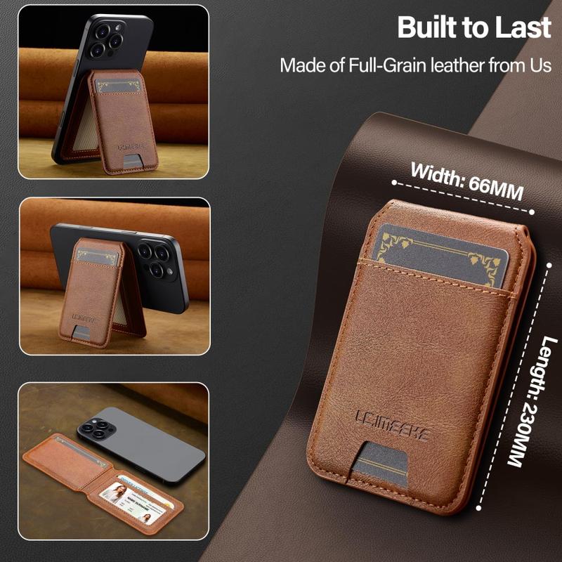 Der magnetische Kartenhalter von LC.IMEEKE ist ein schlankes und elegantes Handy-Accessoire, das die sichere Aufbewahrung von Karten mit dem Komfort des Alltags verbindet. Es wird magnetisch an kompatiblen Mobiltelefonen befestigt und hält Ihre wichtigen Karten in der Nähe, während es ein leichtes Profil beibehält. Mit einem verstellbaren Ständer für freihändiges Betrachten und integriertem RFID-Schutz ist dieses Portemonnaie ideal für den täglichen Gebrauch - egal ob Sie pendeln, reisen oder zu Hause entspannen.