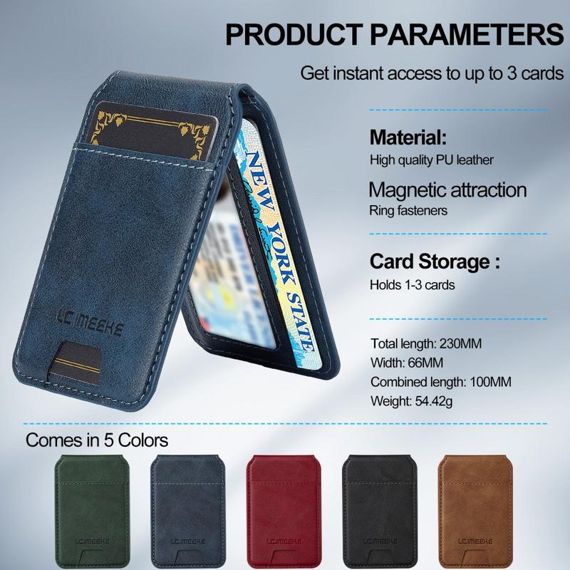 Der magnetische Kartenhalter von LC.IMEEKE ist ein schlankes und elegantes Handy-Accessoire, das die sichere Aufbewahrung von Karten mit dem Komfort des Alltags verbindet. Es wird magnetisch an kompatiblen Mobiltelefonen befestigt und hält Ihre wichtigen Karten in der Nähe, während es ein leichtes Profil beibehält. Mit einem verstellbaren Ständer für freihändiges Betrachten und integriertem RFID-Schutz ist dieses Portemonnaie ideal für den täglichen Gebrauch - egal ob Sie pendeln, reisen oder zu Hause entspannen.