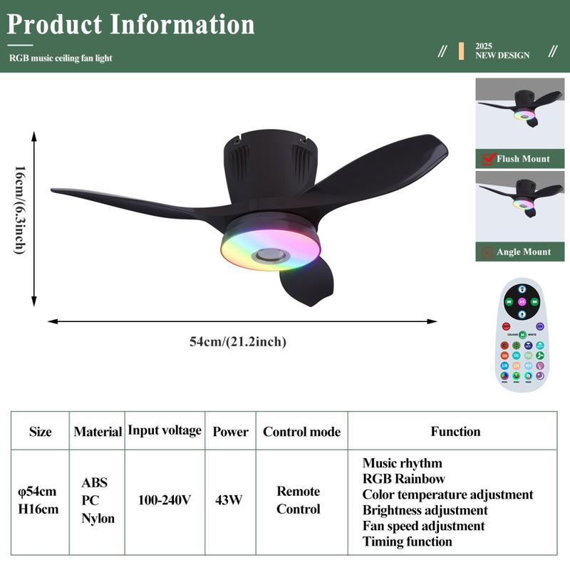 LEC016R Deckenventilator-Licht - RGB-Stimmung, leiser Luftstrom und integrierter Bluetooth-Lautsprecher
