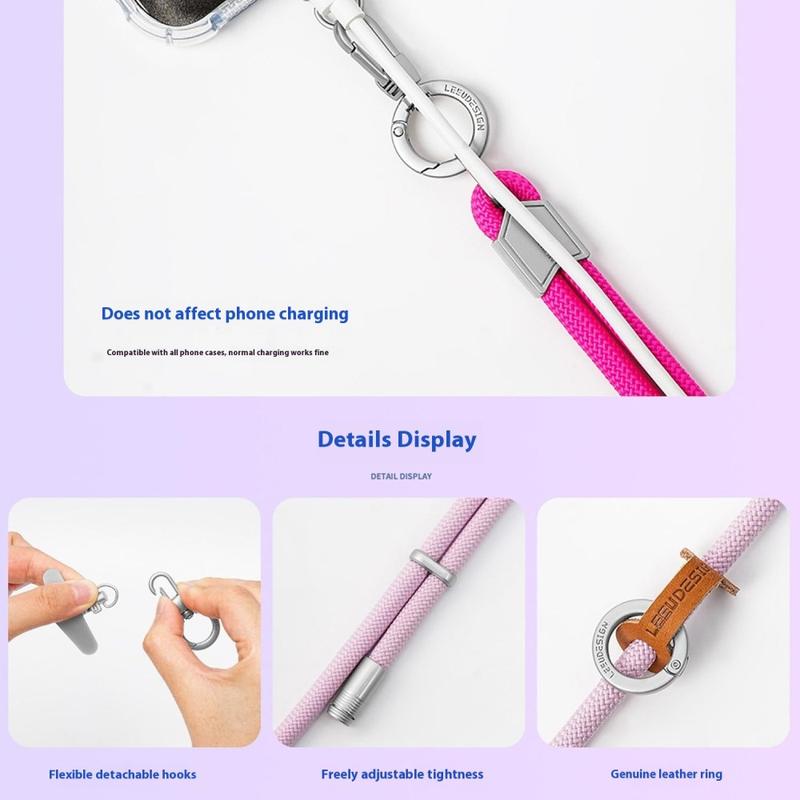 Das LEEU DESIGN Crossbody Phone Lanyard ist die perfekte Mischung aus Komfort, Stärke und Stil. Mit strapazierfähigen Materialien, verstellbarer Länge und einem sicheren Halteband ist es für alle gedacht, die sowohl Funktionalität als auch Mode bei ihren Accessoires schätzen.