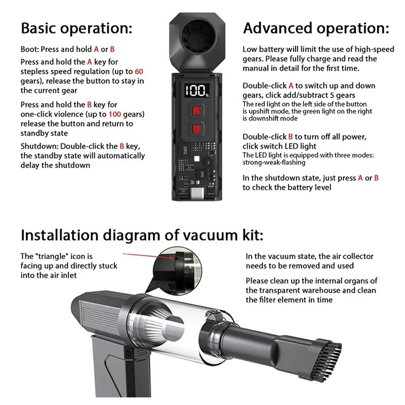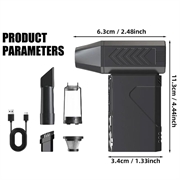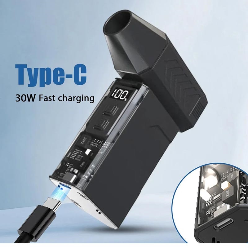 Der 2-in-1-Jet-Turbo-Gebläse und Staubsauger ist ein kompaktes, schnelles Reinigungsgerät, das für die schnelle Staubentfernung und die tägliche Reinigung entwickelt wurde. Wechseln Sie zwischen leistungsstarker Luftstrahl- und Saugfunktion, um verschiedene Aufgaben in Ihrem Zuhause, Ihrem Auto oder Ihrem Arbeitsbereich zu erledigen. Mit 100 Geschwindigkeitsstufen und einem großen 8000-mAh-Akku können Sie den Luftstrom oder die Saugleistung fein einstellen und bei Bedarf lange arbeiten.