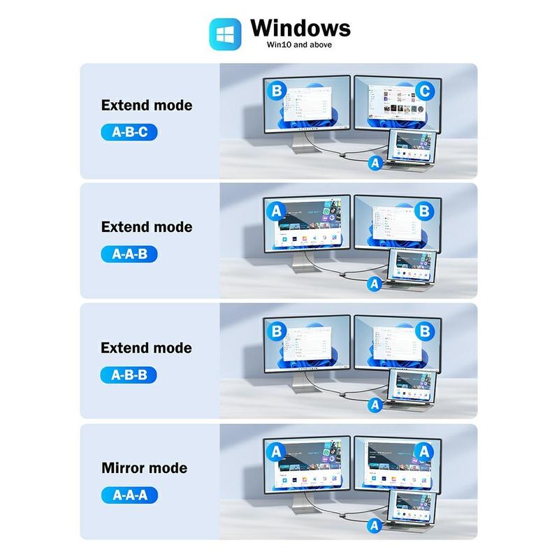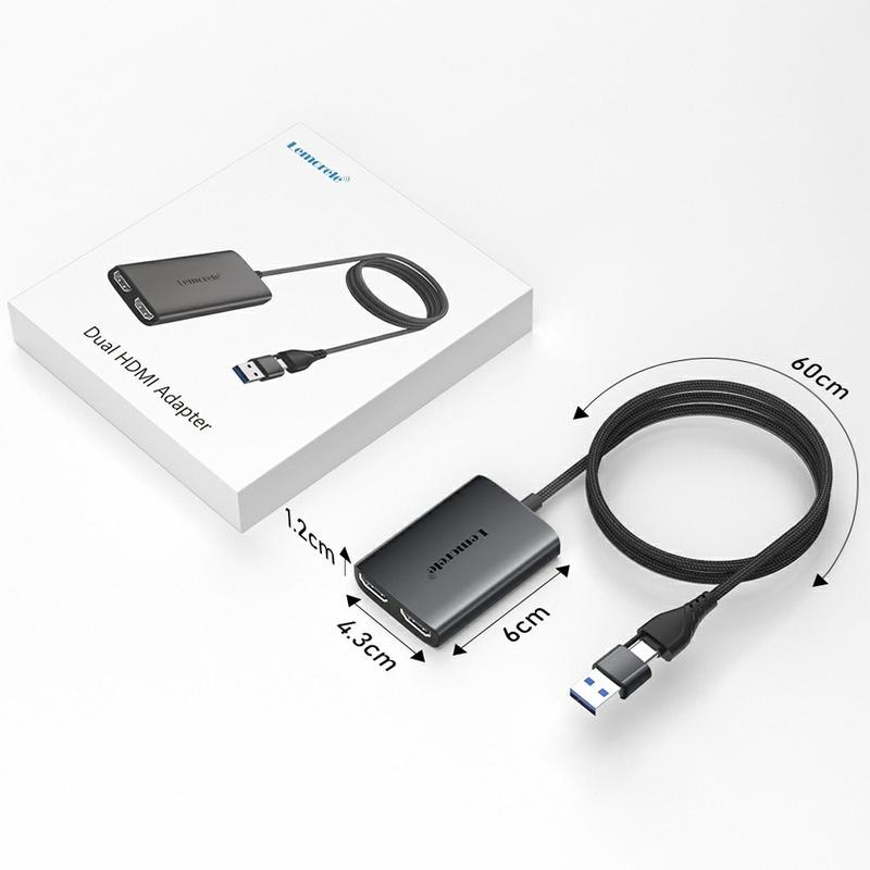 Der Lemorele HD10 USB/USB-C-auf-Dual-HDMI-Adapter wurde entwickelt, um Ihr Laptop- oder Desktop-Display über zwei externe Bildschirme zu erweitern oder zu spiegeln. Er ermöglicht die Einrichtung von zwei Monitoren und verbessert so die Produktivität, das Multitasking und die Effizienz des Arbeitsablaufs im professionellen und alltäglichen Gebrauch.