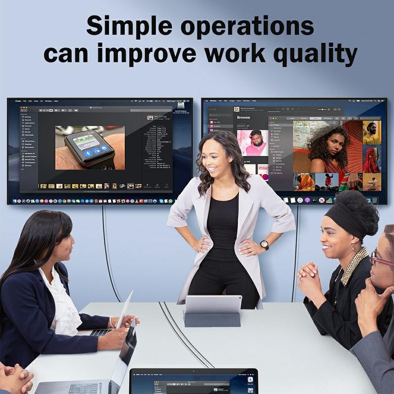 Dieser Adapter verfügt über zwei HDMI-Ausgänge, die erweiterte und gespiegelte Anzeigemodi unterstützen. Ein Anschluss unterstützt 4K-Auflösung bei 30 Hz (über den TUTULINK-Treiber), während der zweite 1080P Full HD liefert, was flexible Anzeigekombinationen für Arbeit, Präsentationen oder Unterhaltung ermöglicht.