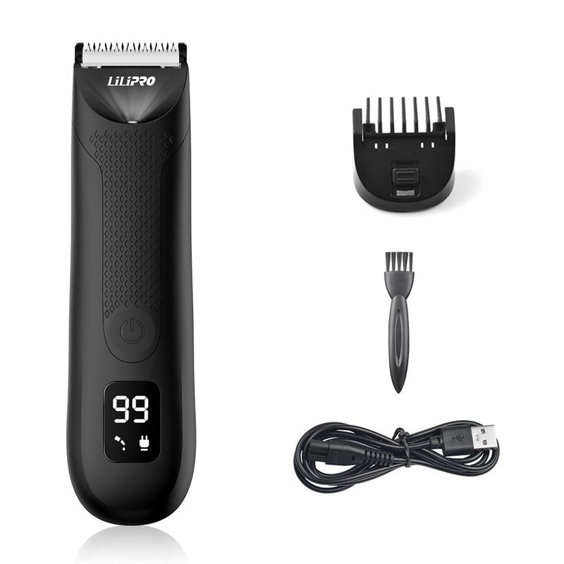 Lilipro Wasserdichter elektrischer Körperhaartrimmer mit LED-Anzeige - Schwarz