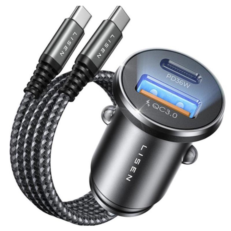• Lisen 51W Autoladegerät mit USB-C-Kabel - 1 x USB-C und 1 x USB-A, Power Delivery, Schnellladung, PPS, Aluminiumlegierung