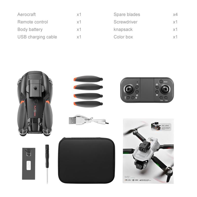 Machen Sie Ihre ersten Schritte in der Luftbildfotografie mit der faltbaren, bürstenlosen Drohne M1S - tragbar, anfängerfreundlich und voller kreativer Funktionen. Dank ihrer Multi-Winkel-Kamera (Front- und Zusatz-/Nach-unten-Perspektive) haben Sie mehr Freiheit beim Filmen von Landschaften, Familienausflügen und Action-Momenten, während die optische Flusspositionierung dafür sorgt, dass die Drohne stabiler schwebt und klarere Aufnahmen macht. Die vordere Hauptkamera unterstützt einen einstellbaren Winkel von 90 Grad, wodurch es einfacher wird, alles von weiten Landschaften bis hin zu Aufnahmen aus höherem Winkel einzufangen.