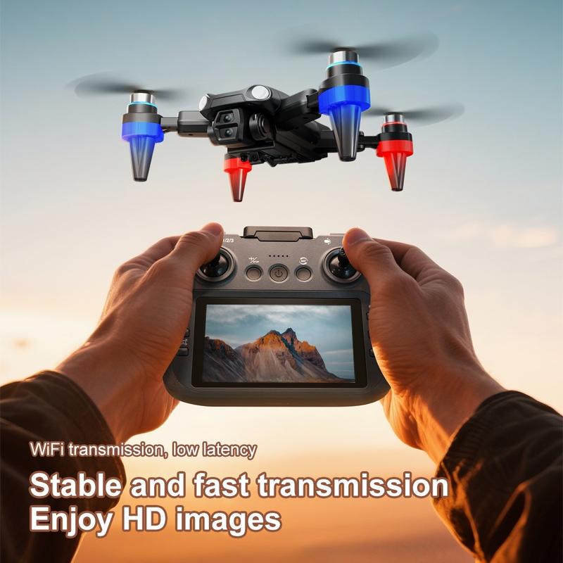 Die M9 FPV-Drohne mit bürstenlosem Motor ist für Abenteuer, Kreativität und zuverlässige Flugleistung konzipiert. Mit einem faltbaren Design für Portabilität, intelligenter Hindernisvermeidung und zwei HD-Kameras mit elektronischer 90°-Einstellung bietet sie vielseitige Aufnahmewinkel aus der Luft. Mit optischer Strömungspositionierung und Höhenhaltung ist der Schwebeflug auch für Anfänger problemlos und stabil. Die Echtzeit-FPV-Übertragung sendet Live-Videos direkt auf Ihr Smartphone oder den mitgelieferten Controller mit 4,3-Zoll-Bildschirm, während bürstenlose Motoren für leisere, effizientere Flüge sorgen. Die M9 ist mit drei Akkus ausgestattet und eignet sich daher perfekt für Luftaufnahmen, Reisen und beeindruckende Drohnenerlebnisse.