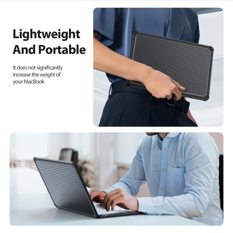 Das präzise geformte Design sorgt für einen passgenauen Sitz mit exakten Ausschnitten und einem reibungslosen Öffnen und Schließen. Erhöhte Anti-Rutsch-Pads an der Unterseite verbessern die Stabilität und unterstützen die Luftzirkulation für eine bessere Wärmeableitung, während das Mikro-Clip-Design die Hülle sicher an ihrem Platz hält und bei Bedarf ein einfaches Anbringen oder Abnehmen ermöglicht.