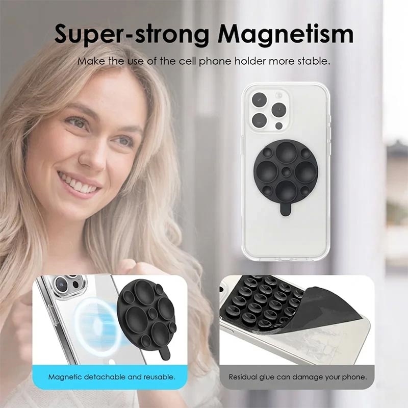 Er besteht aus weichem Silikon und bietet eine angenehme Haptik, guten Halt und zuverlässige Langlebigkeit für den täglichen Gebrauch. Das leistungsstarke Magnetdesign sorgt dafür, dass MagSafe-kompatible Smartphones sicher an ihrem Platz bleiben, während die Saugnapfbasis eine stabile Freisprechlösung für verschiedene Situationen zu Hause oder unterwegs bietet. Leicht und einfach zu transportieren, ist er ein praktisches Zubehör für Nutzer, die eine schnelle Smartphone-Halterung ohne sperrige Halterungen oder komplizierte Installation wünschen.