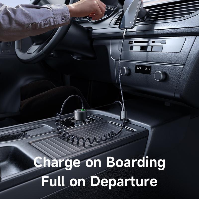 Ein einziger kompakter Adapter ersetzt ein Gewirr von separaten Kabeln und leistungsschwachen Bricks. Mit zwei Anschlüssen und zwei festen Kabeln kann jedes Gerät im Auto genau die Leistung abrufen, die es benötigt - kein langsames Rinnsal, keine Kabelsuche, keine Zeitverschwendung an Tankstellen.