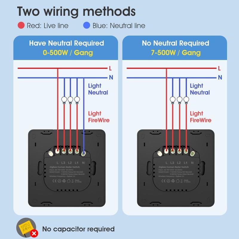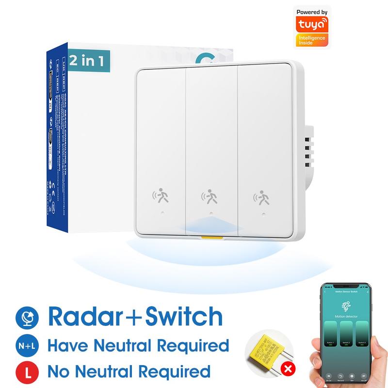 • MG-KG126 Zigbee Radar-Smart-Switch / Wandschalter mit Personensensor, Tuya-fähige Fernbedienung - 3 Gang, 1 Weg