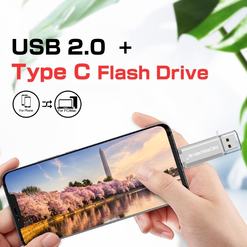 - Flash-Laufwerke mit zwei Anschlüssen überbrücken die Kompatibilitätslücke zwischen älteren Geräten mit USB-A und neueren Geräten mit Typ-C und vereinfachen so die Datenübertragung.