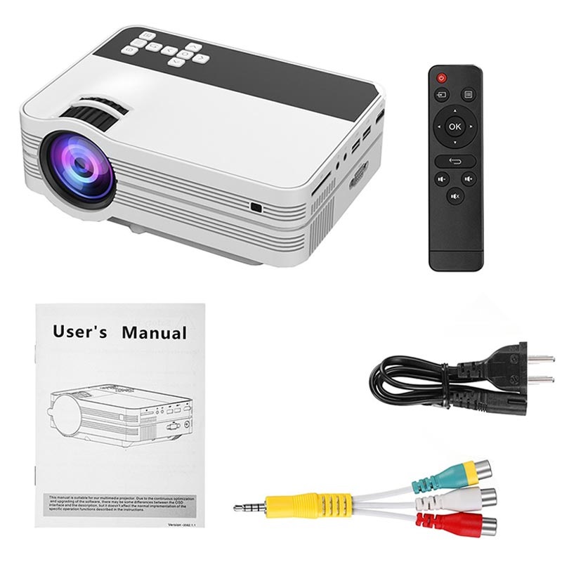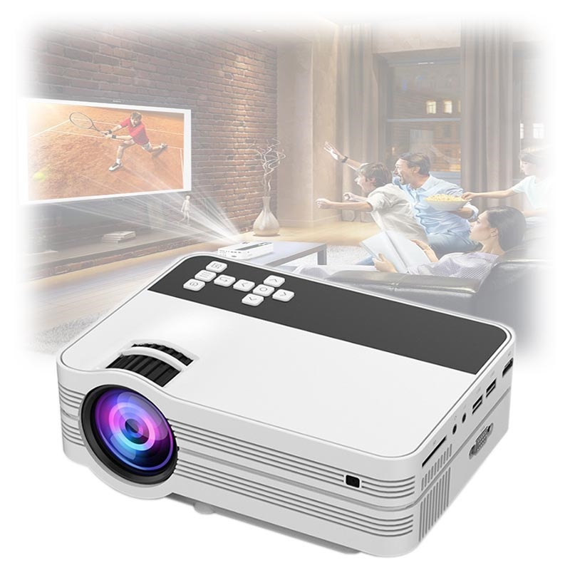 Wenn die Größe Ihres Fernsehers nicht Ihren Bedürfnissen entspricht, dann ist der UB-10 LED-Projektor die perfekte Lösung, um Videos, Fotos oder Spiele in FullHD-Auflösung von Ihrem Smartphone, Tablett, Laptop, USB-Stick, SD-Karte, TV-Box, DVD-Player oder einem anderen Gerät mit HDMI-, USB- oder VGA-Ausgang anzusehen. Dieser mini und tragbare LED-Projektor verfügt über integrierte Stereolautsprecher, die das Benutzererlebnis erhöhen, aber wenn Sie Videos über den VGA-Ausgang streamen, müssen Sie Ihre externen Lautsprecher anschließen.