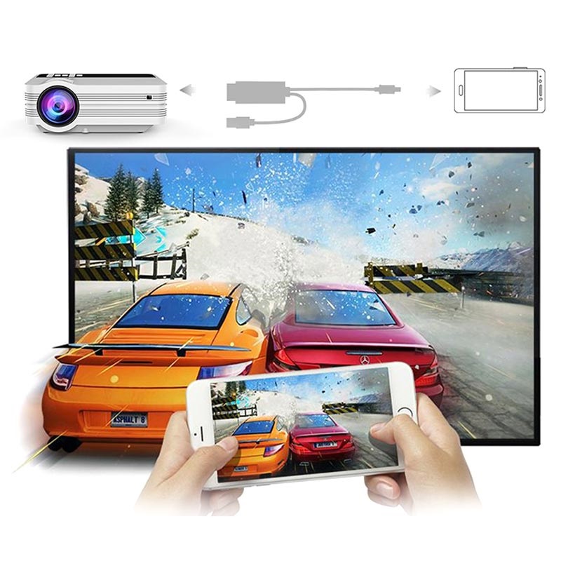 - Hinweis: Wenn Sie das Bild von Ihrem Telefon / Tablet teilen möchten, benötigen Sie ein HDMI-Kabel mit einem USB-Stecker, um es an die Stromquelle des Projektors oder den WLAN-Display-Dongle anzuschließen