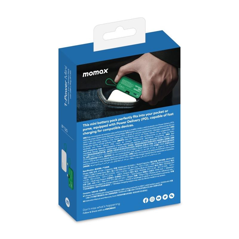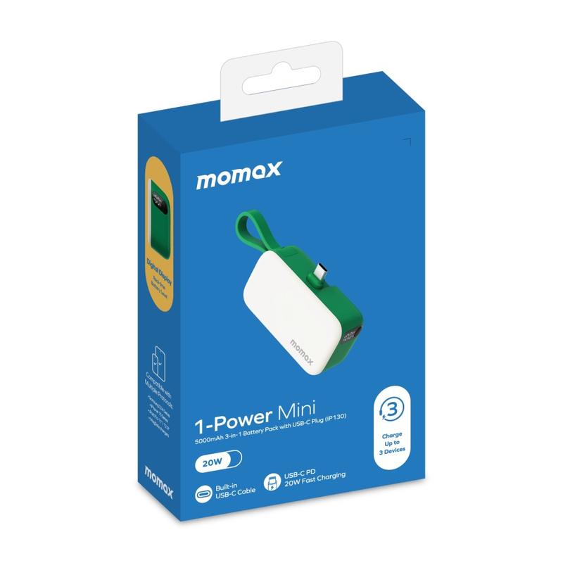 Momax 1-Power Mini Pop Art 5000mAh Power Bank / Tragbares Ladegerät mit USB-C Stecker, USB-C Kabel, USB-C Anschluss - 20W