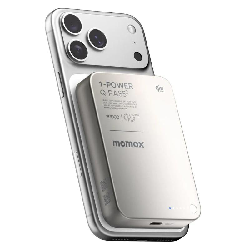 Momax 1-Power Q.Pass2 Qi2.2 25W Magnetisch Wireless Power Bank 10000mAh - USB-C PD 30W, Snap-On Charging für iPhone 12-17 Serie