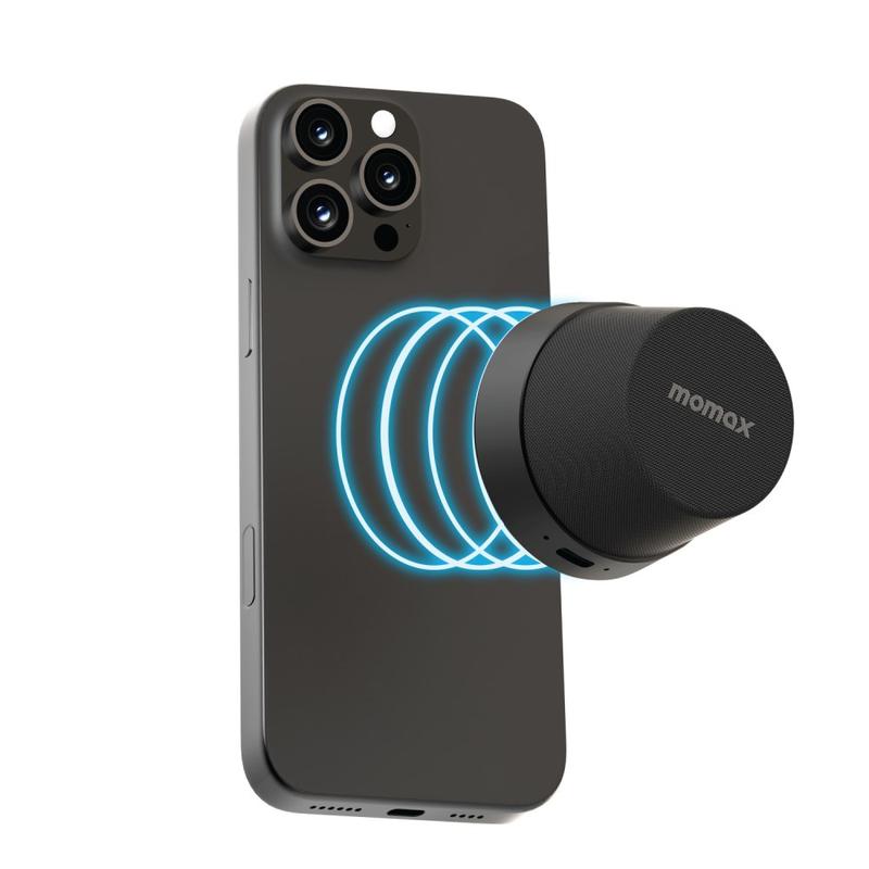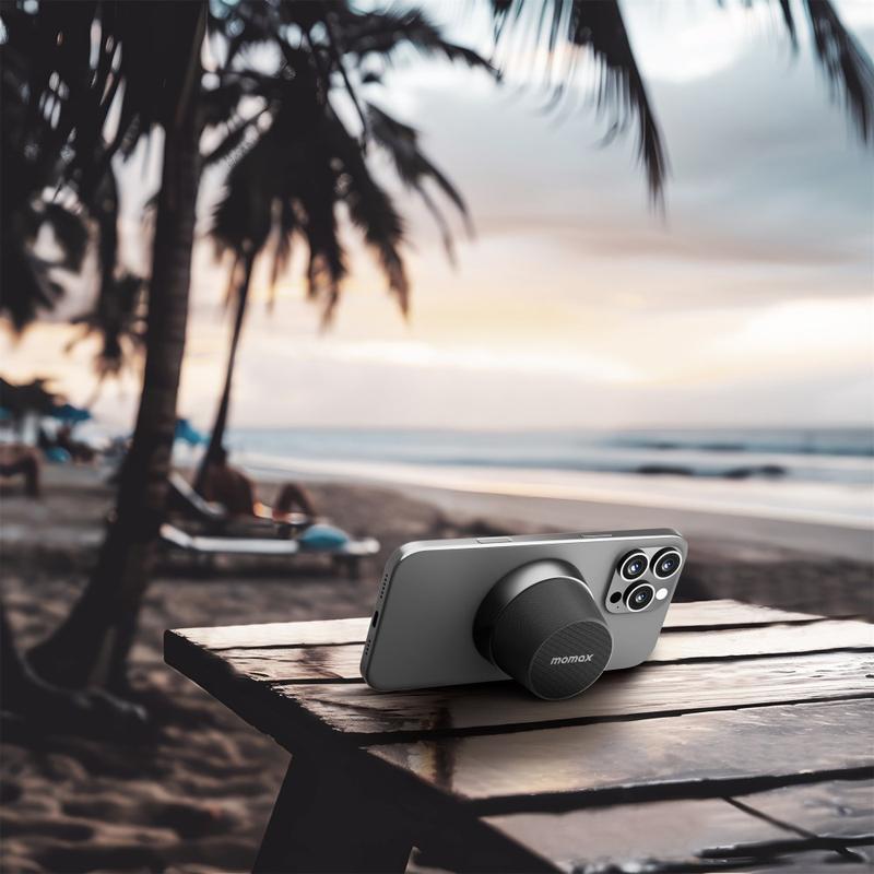 Momax 1-Vibe Go BS6 Magnetischer Mini-Bluetooth-Lautsprecher und Handyhalter, 360°-Sound und IPX6 wasserdicht