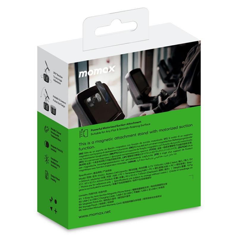 Momax KH20 1-Snap Go Elektrischer magnetischer Handyhalter - Motorisierte automatische Saugnapfhalterung, dreiachsiger klappbarer Halter mit 360°-Drehung, über USB-C aufladbar