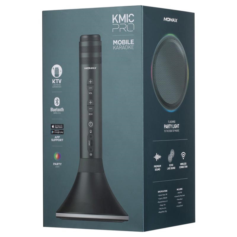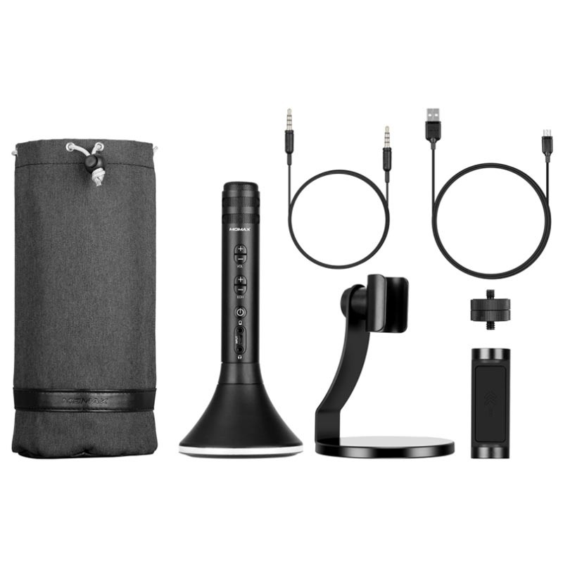 Momax Kmic Pro Drahtlose Karaoke Mikrofon mit Smartphone Halterung - Schwarz