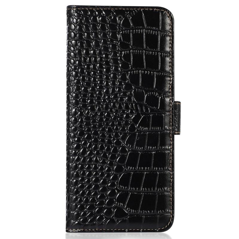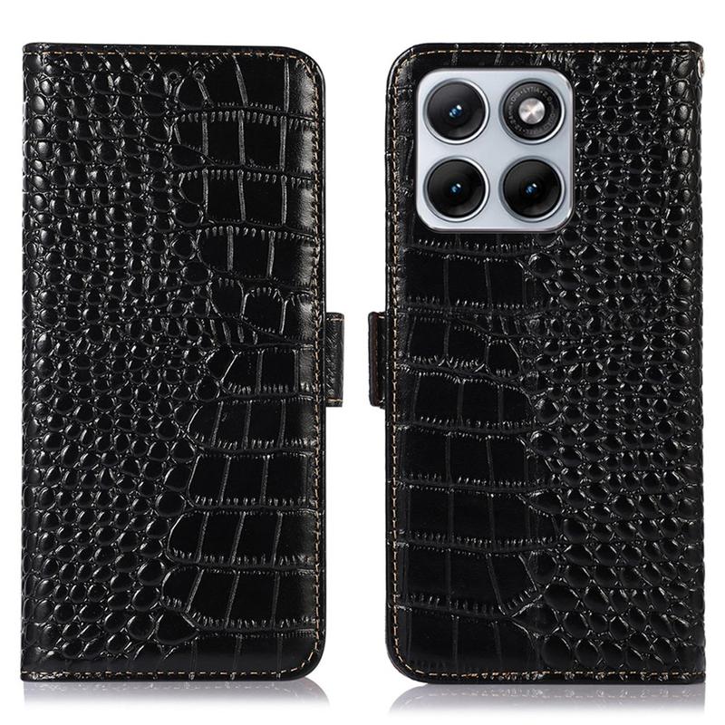 Motorola Edge 70 Fusion Crocodile Serie Lederhülle mit Geldbörse mit RFID - Schwarz
