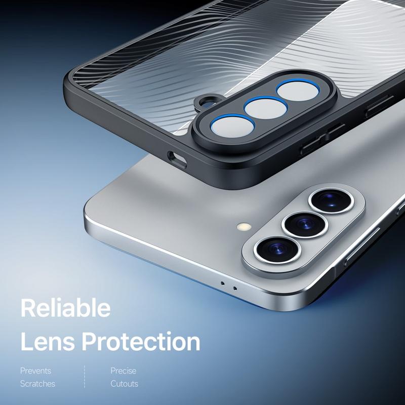 Werten Sie das Erscheinungsbild Ihres Samsung Galaxy A57 auf und schützen Sie es vor Beschädigungen mit der Hybridhülle Dux Ducis Aimo. Sein elegantes Design mit fließenden Linien fügt nicht nur eine optisch ansprechende Note hinzu, sondern hat auch Anti-Fingerabdruck-, Anti-Fading- und hydrophobe Eigenschaften für verbesserte Funktionalität. Darüber hinaus verfügt das Gehäuse über eine präzise ausgeschnittene Linse, um Ihre Kamera vor versehentlichem Herunterfallen, Stößen und Kratzern zu schützen.