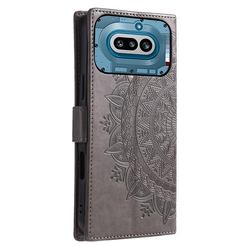 Nothing Phone (4a) Mandala-Wallet Hülle mit Handschlaufe - Grau