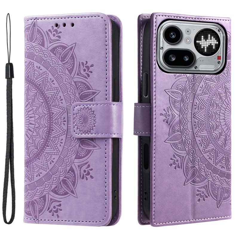 Nothing Phone (4a) Pro Mandala-Wallet Hülle mit Handschlaufe - Lila