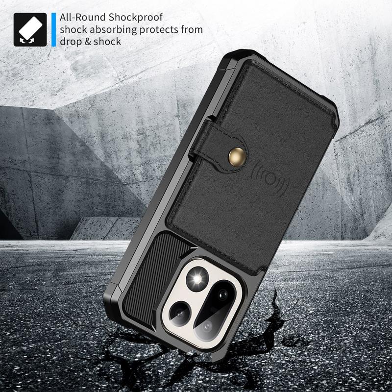 - Die Brieftaschenhülle für das OnePlus 15 verfügt über einen sicheren Druckknopfverschluss, ein Brieftaschendesign und mehrere Kartenfächer mit einer Geldtasche