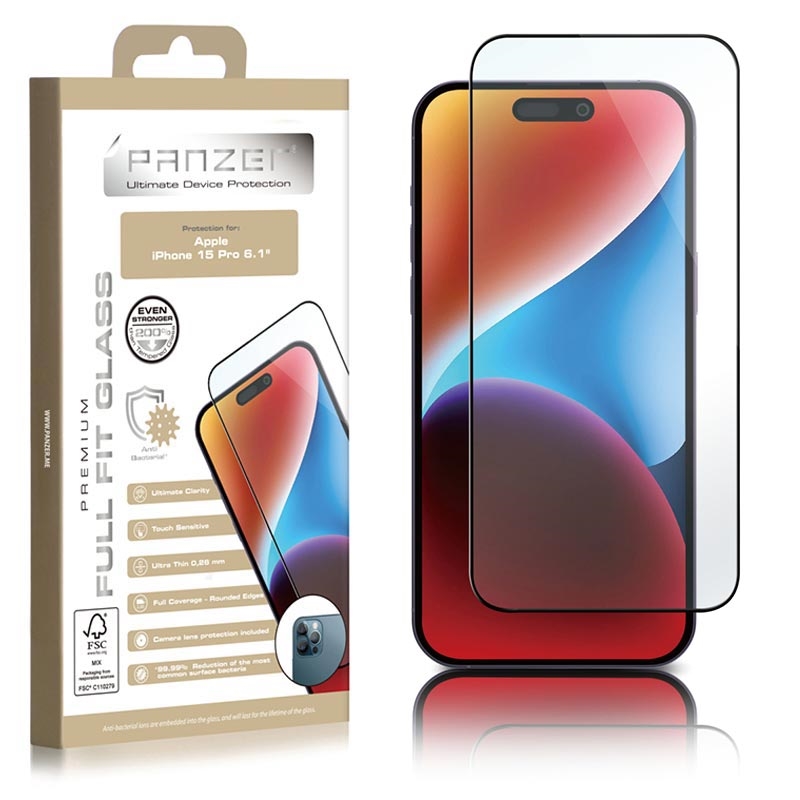 • Panzer Premium Full-Fit Panzerglas für iPhone 15 Pro