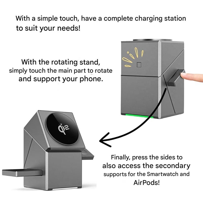 - Drehbares modulares Design verwandelt sich von einem kompakten Würfel in eine offene Ladestation
