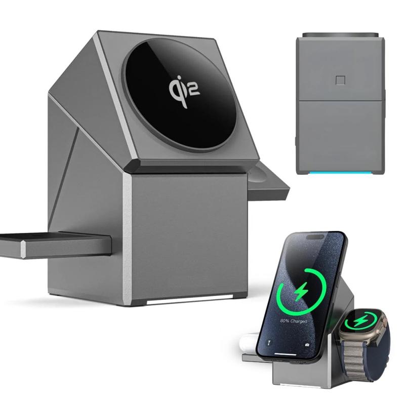 • Hochwertige 3-in-1-drehbare Qi2-Magnet-Wireless-Ladestation für iPhone, Apple Watch und AirPods