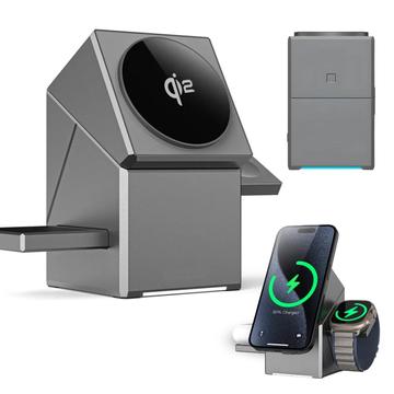 Premium 3-in-1 drehbare Qi2 magnetische kabellose Ladestation - Grau