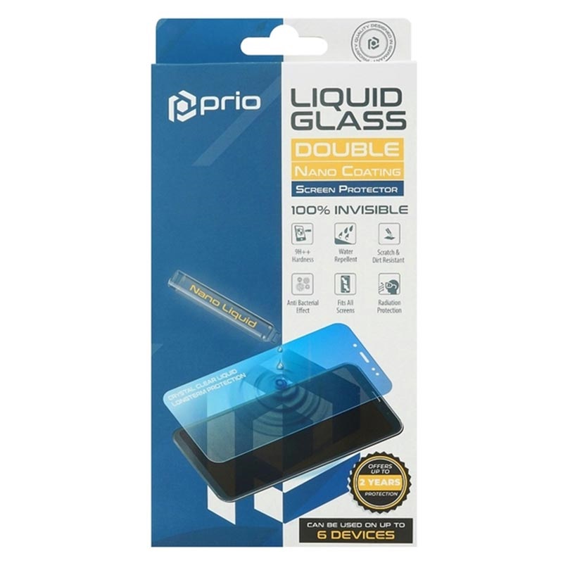 Halten Sie das Display Ihres Geräts mit dem Prio Dual Nano-Flüssigbildschirmschutz gut geschützt und bakterienfrei. Der Prio Dual bietet langfristigen Schutz dank der doppelten Nanobeschichtung, die die Bildschirmhärte auf bis zu 9H++ erhöht. Vor allem der flüssige Nano-Bildschirmschutz Prio Dual ist unsichtbar, aber effizient. Es bietet auch einen Strahlungsschutz für Ihre Augen.