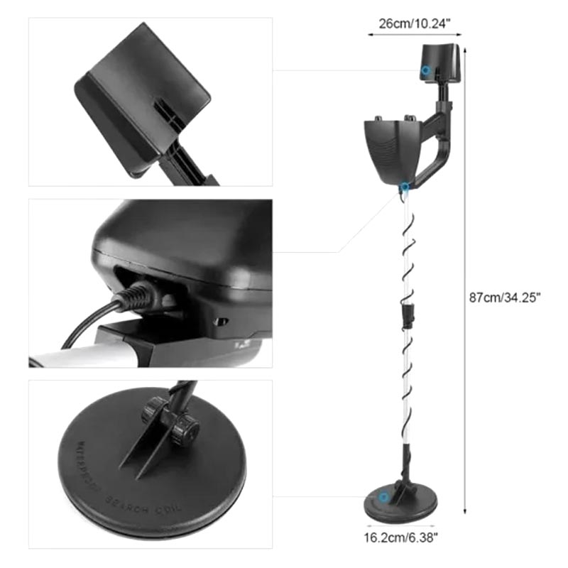 - Sie können die Länge des Metalldetektors mit dem verstellbaren Stab anpassen