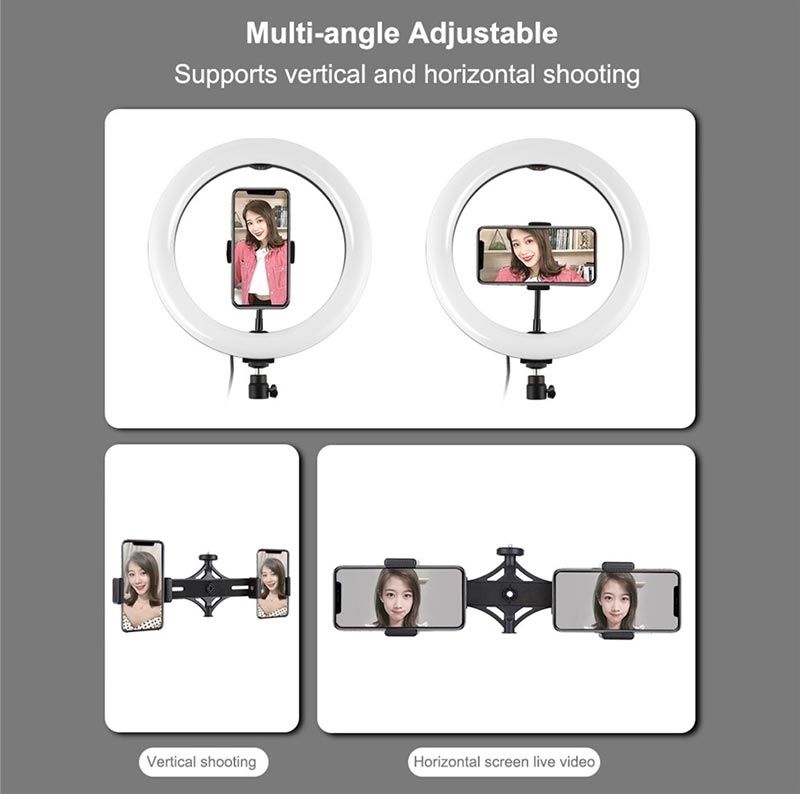 Die USB-Anschlüsse können mit mehreren Geräten verwendet werden, wie z. B. Computer-Host, Laptop, mobile Macht und USB-Ladegerät anschließen. Sie werden in der Lage sein, LED-Ringlicht jederzeit frei zu genießen