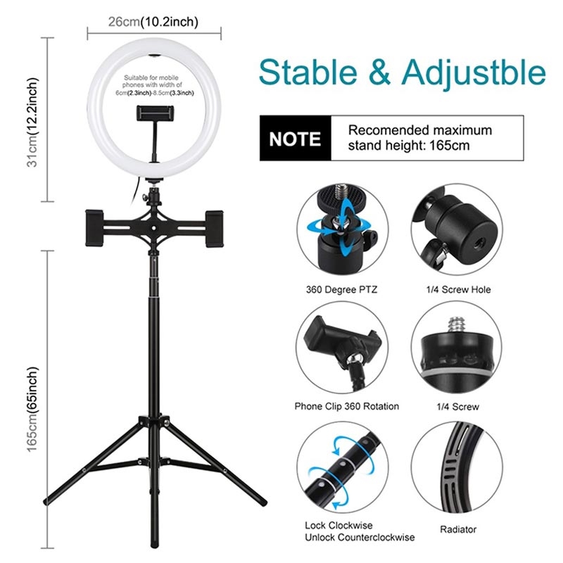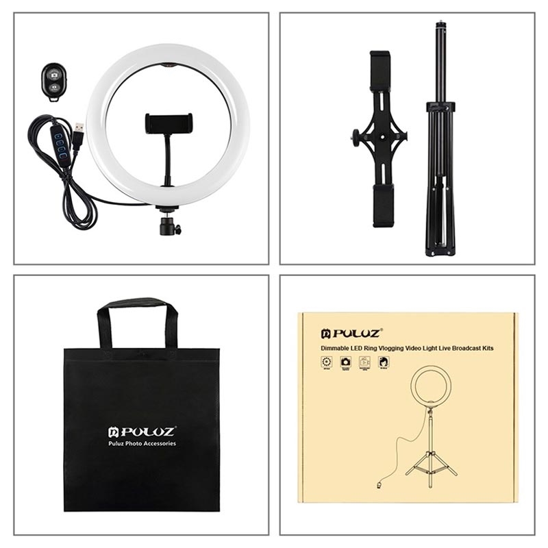 PULUZ PKT3066B 10.2" LED Selfie Ring Licht Handy Klemme Stativ Stand für YouTube Blogger Video Shooting