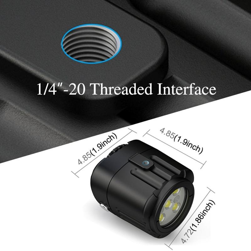Mit ihrem robusten Aluminiumgehäuse und einer Wasserdichtigkeit bis zu 40m (kein zusätzliches Gehäuse erforderlich) ist sie für den Einsatz unter Wasser geeignet und dennoch klein genug, um an Helmen, Fahrradhalterungen, Handgriffen, Drohnen oder Kamerakäfigen befestigt zu werden. Mit mehreren Helligkeitsmodi und SOS können Sie sich schnell an verschiedene Szenen und Bedingungen anpassen.