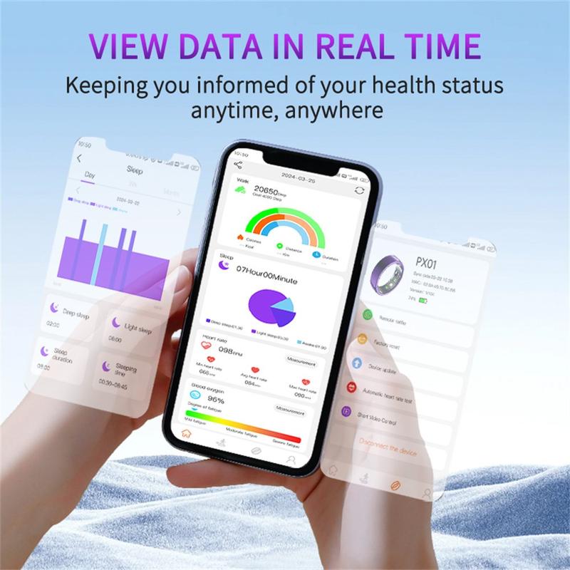 PX01 Schlaf & Gesundheit Tracking Smartring mit Ladestation - IP68 Wasserdicht, Smart Data Analyse