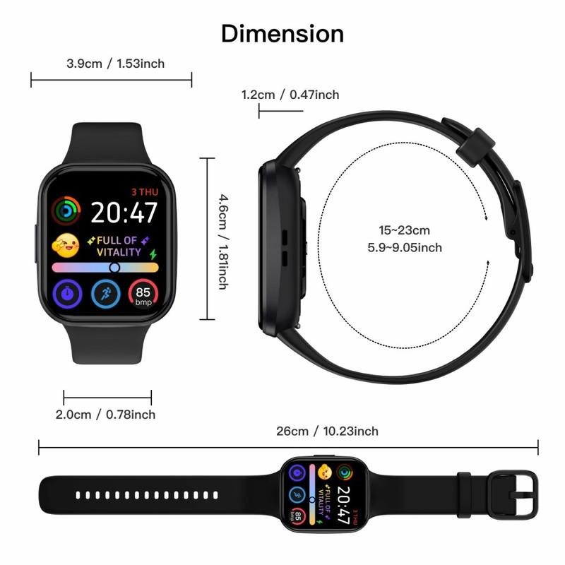 Die Smartwatch Q23Pro bietet ein großes 1.83-Zoll-Farbdisplay, reibungslose Leistung und zuverlässige Gesundheits- und Fitness-Tracking-Funktionen für den täglichen Gebrauch. Mit ihrem schlanken, integrierten Gehäuse und dem 3D-gebogenen Glas unterstützt sie Bluetooth-Anrufe, Musiksteuerung und über 100 anpassbare Zifferblätter. Mit ihrer langen Akkulaufzeit, umfassenden Gesundheitsüberwachung und breiten Kompatibilität mit Android und iOS ist sie eine praktische Smartwatch, um in Verbindung zu bleiben und aktiv zu sein.