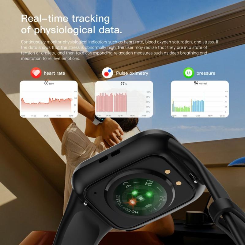 - Gesundheitsüberwachung: Herzfrequenz, Blutdruck, Blutsauerstoff, Körpertemperatur, Stress und Schlaf
