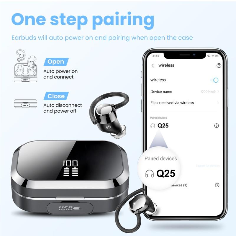 Die kabellosen Q25-Ohrhörer sind für Nutzer konzipiert, die sich einen sichereren Sitz, praktische Akkuunterstützung und flexiblen Hörgenuss im Alltag in einem kompakten Paket wünschen. Dank ihres ergonomischen Ohrbügel-Designs sitzen sie auch beim Sport, auf dem Weg zur Arbeit, beim Spazierengehen und im täglichen Gebrauch bequem und sicher, während das mitgelieferte Ladecase mit seiner integrierten Powerbank-Funktion für zusätzlichen Komfort sorgt. Damit sind die Q25 eine clevere Wahl für alle, die mehr als nur ein gewöhnliches Paar kabelloser Ohrhörer suchen.
