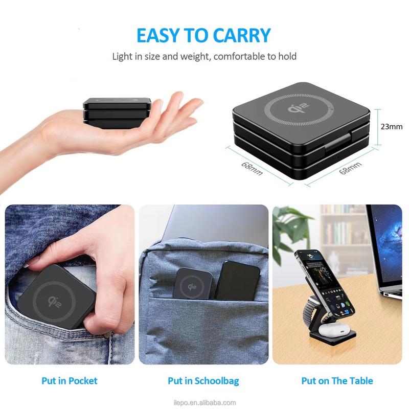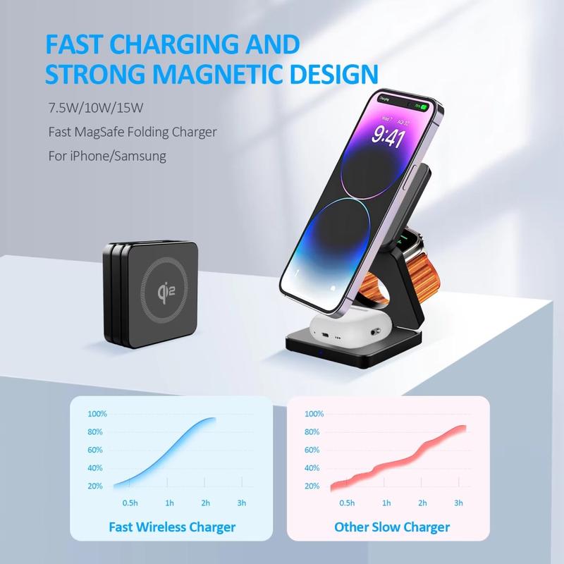- 1 × Qi2 3-in-1 faltbarer magnetischer kabelloser Ladeständer