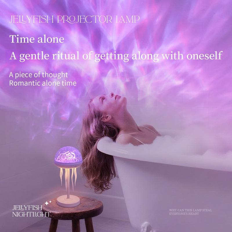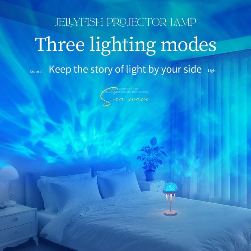 Verwandeln Sie Ihren Raum in einen beruhigenden, immersiven Raum mit diesem quallenförmigen Wellenmuster-Projektor. Seine fließenden Lichteffekte schaffen eine ruhige, verträumte Atmosphäre - perfekt für Schlafzimmer, Wohnzimmer, Kinderzimmer oder Entspannungsecken.