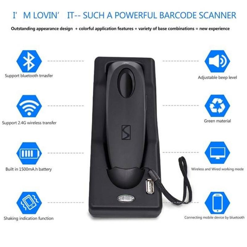 • R40 Drahtloser 2D-Barcodescanner - Bluetooth 4.0 & 2.4GHz QR-Code-Leser mit Ladestation, 1500 Scans/s