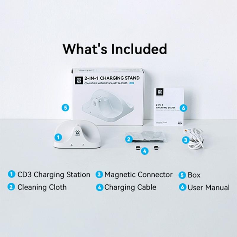 Die AMVR CD3 Ladestation wurde entwickelt, um Ihre Ray-Ban Meta AI Brille und ihr Ladeetui gleichzeitig zu betreiben. Genießen Sie effizientes, gleichzeitiges Laden, ohne Kabel oder Anschlüsse zu tauschen.