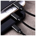 Haben Sie es satt, auf Ihren Reisen verschiedene Kabel für Ihre Geräte zu tragen? Dafür gibt es eine einfache Lösung! Nehmen Sie dieses 3-in-1-USB-Kabel von Remax Gition und laden Sie Ihre Geräte, unabhängig davon, ob sie über einen Lightning-, Typ-C- oder microUSB-Anschluss verfügen. Das Kabel ist geflochten, verschleißfest und frei von Verwicklungen.