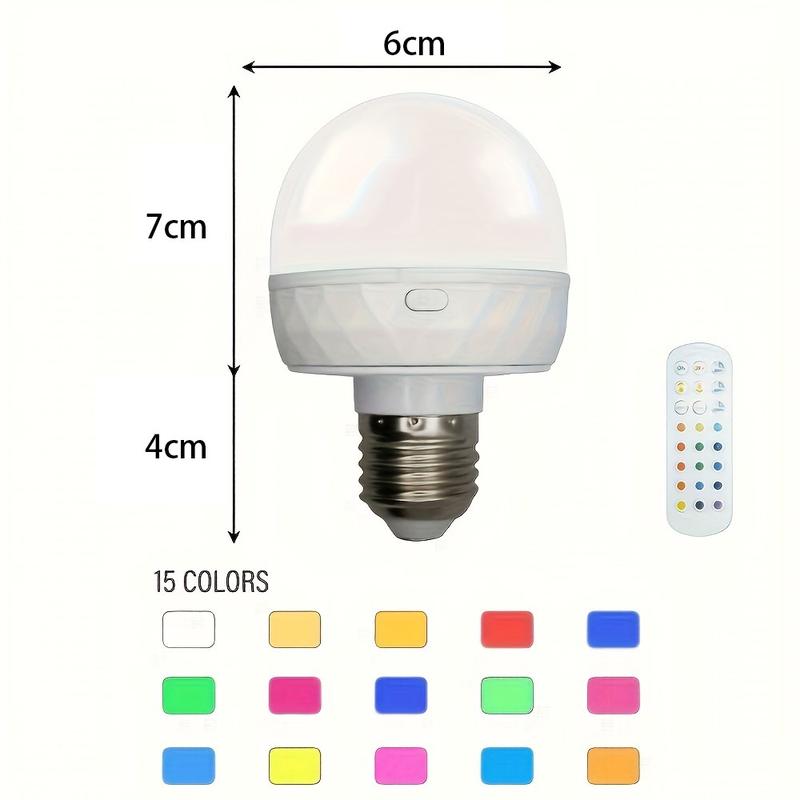 RGB-LED-Glühbirne mit 3600-mAh-Akku – Fernbedienung, stufenloses Dimmen und abnehmbarer E27-Sockel