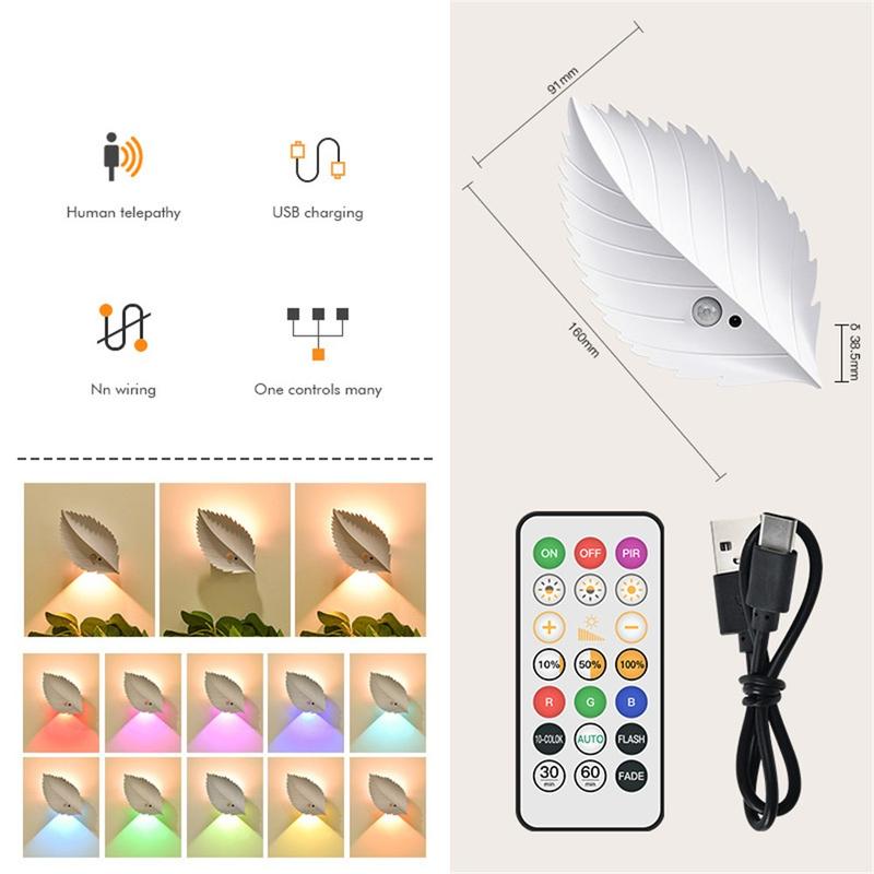 Verleihen Sie jedem Raum eine warme, gemütliche Atmosphäre mit diesem blattförmigen RGBW-Nachtlicht, das dekorativ aussieht und Ihnen gleichzeitig genau dann praktische Beleuchtung bietet, wenn Sie sie brauchen. Es kombiniert Bewegungserkennung mit der Bequemlichkeit einer Fernbedienung, sodass es sich automatisch einschaltet, wenn Sie vorbeigehen, oder vom Bett, Sofa oder Schreibtisch aus eingestellt werden kann. Mit stufenloser Dimmung und 10 Farboptionen können Sie von einem sanften Nachtlicht zu einer stimmungsvollen Beleuchtung für entspannte Abende, Kinderzimmer oder Flure wechseln.