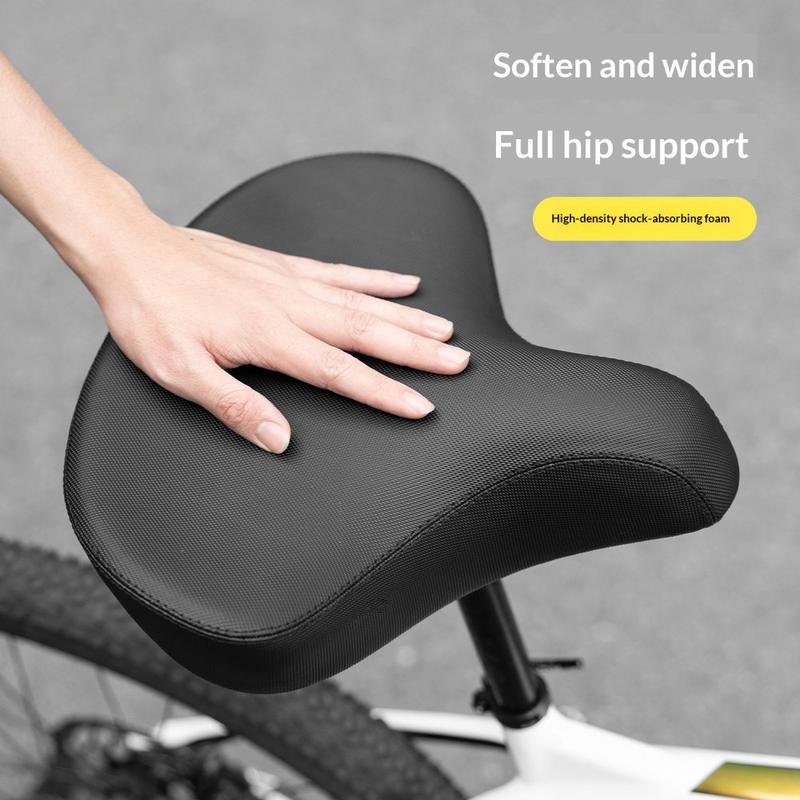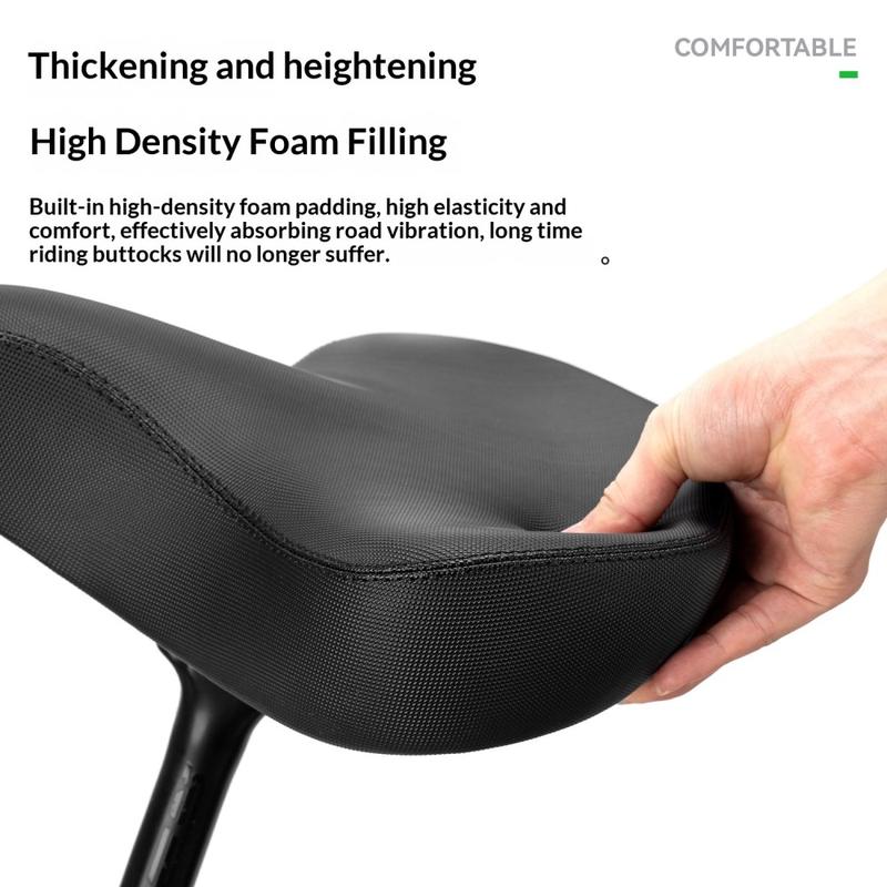 Sein ca. 32 cm breites Design bietet Ihnen eine größere Sitzfläche, wodurch der Druck gleichmäßiger verteilt und der Komfort auf längeren Strecken verbessert wird. Der dicke gepolsterte Schaumstoff hilft, Stöße von unebenen Straßen und unwegsamem Gelände zu absorbieren, was ihn zu einer praktischen Aufrüstung für Mountainbikes, Freizeitfahrräder, Tourenräder und E-Bikes macht. Ob Sie durch die Stadt, auf Schotterwegen oder bei Wochenendausflügen mit dem Fahrrad unterwegs sind, dieser Sattel ist für stabilen Komfort im Alltag ausgelegt.